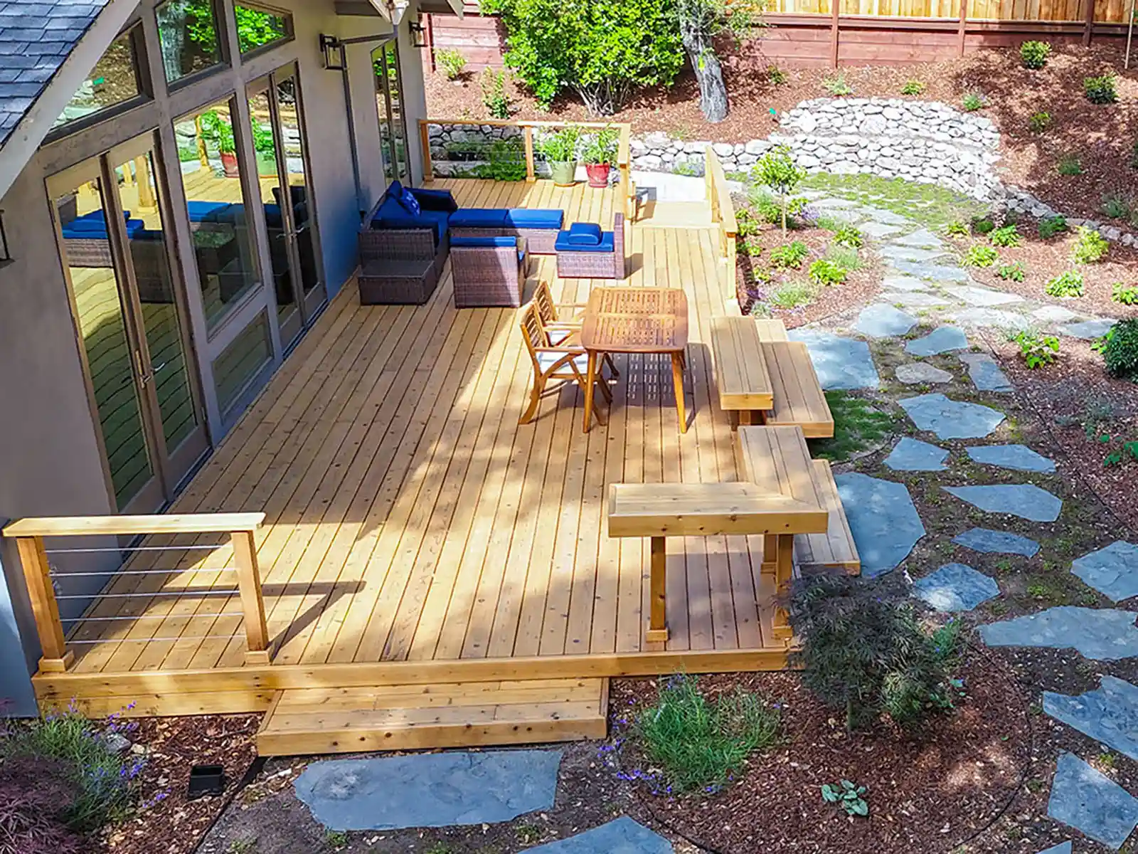Our carpentry expertise offers both beautiful and practical options to perfectly enhance your outdoor space. Our expert craftsmen specialize in designing and building stunning decks, elegant arbors and pergolas, charming gazebos, gorgeous garden bridges, safe and imaginative playgrounds for children, durable and attractive pool decks, fences, and more. We offer wood staining services that enrich and protect your outdoor wood features customized to meet your specific needs. Let us help you create an outdoor space that perfectly suits your lifestyle and tastes.