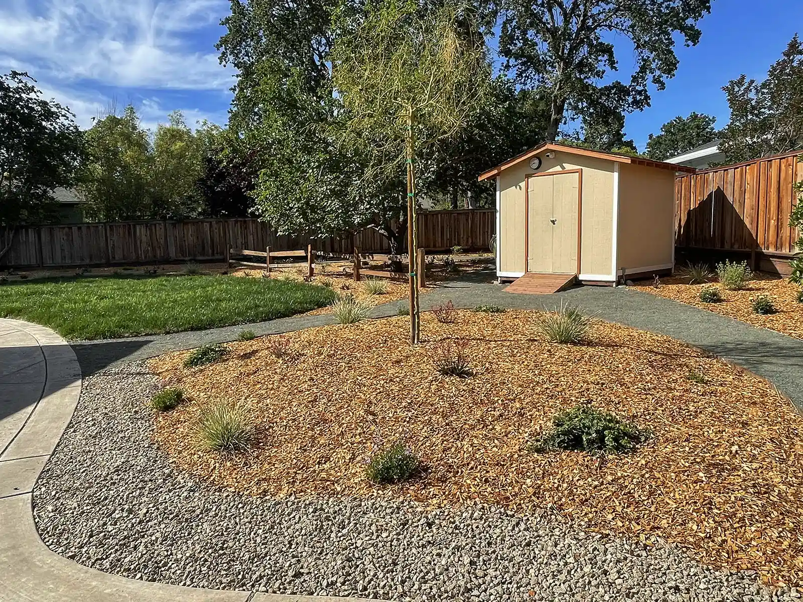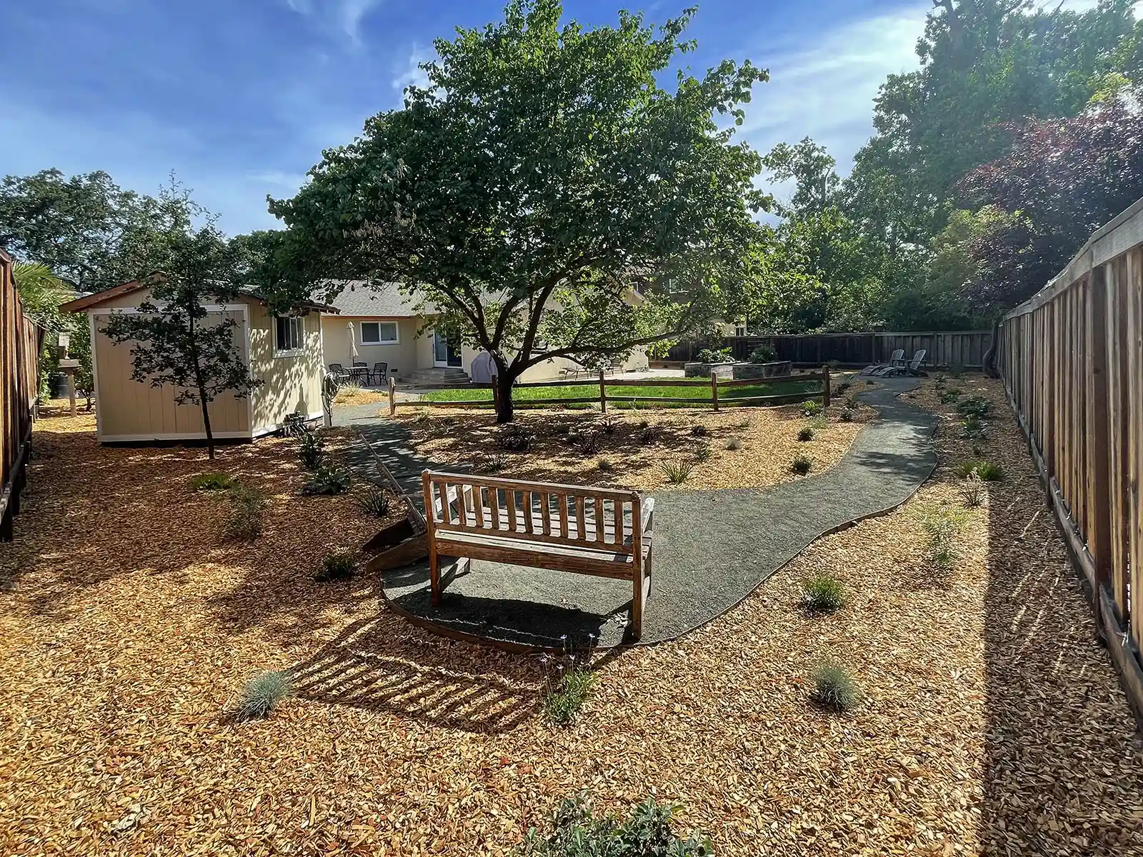 The conversion of grassy areas into pathways and mulched gardens shows our dedication to maximizing the usability of outdoor spaces. Additionally, strategic placement of two seating areas, subtly pulled back, creates an illusion of spaciousness, enhancing the overall inviting atmosphere of the outdoor space.