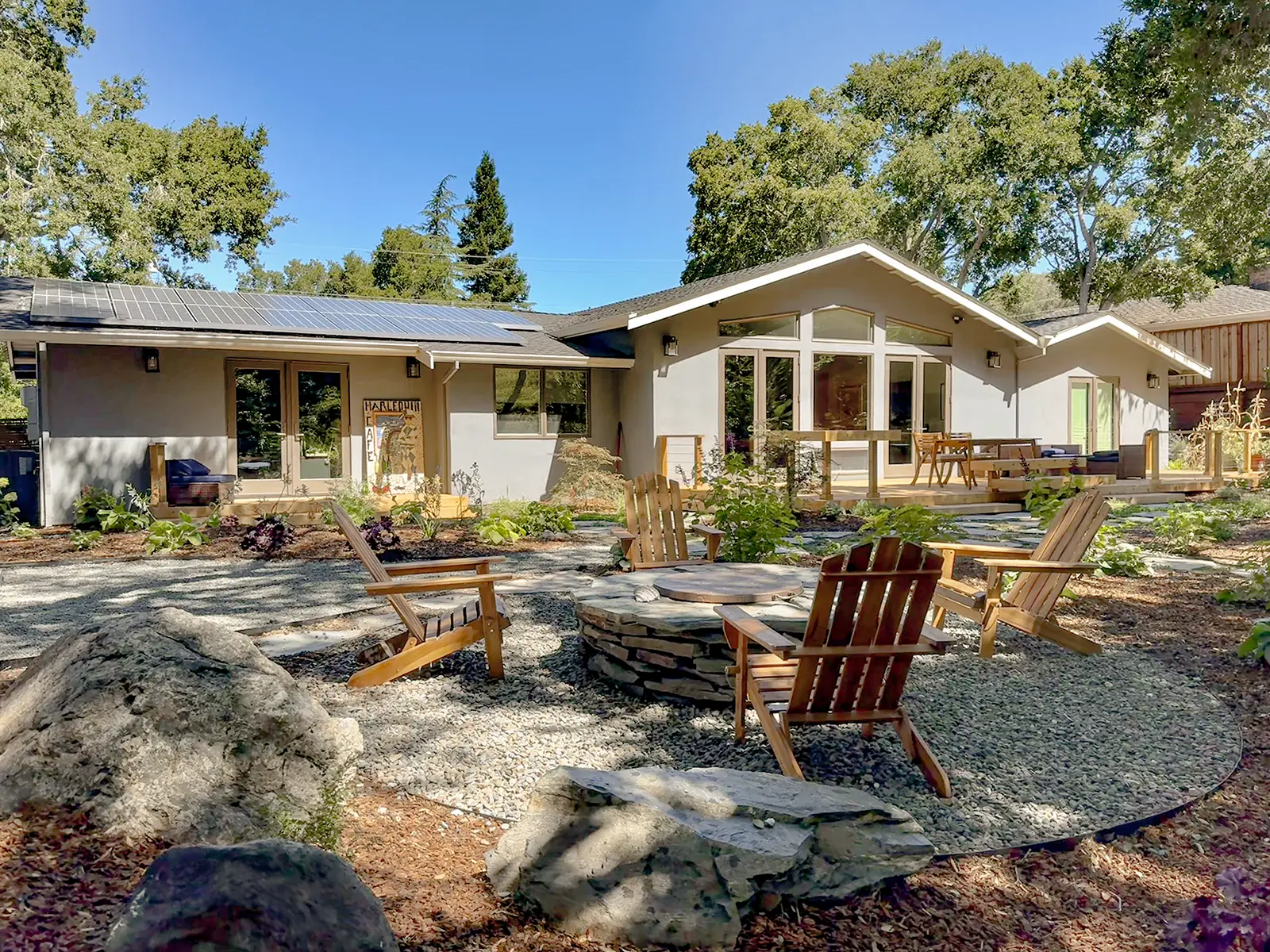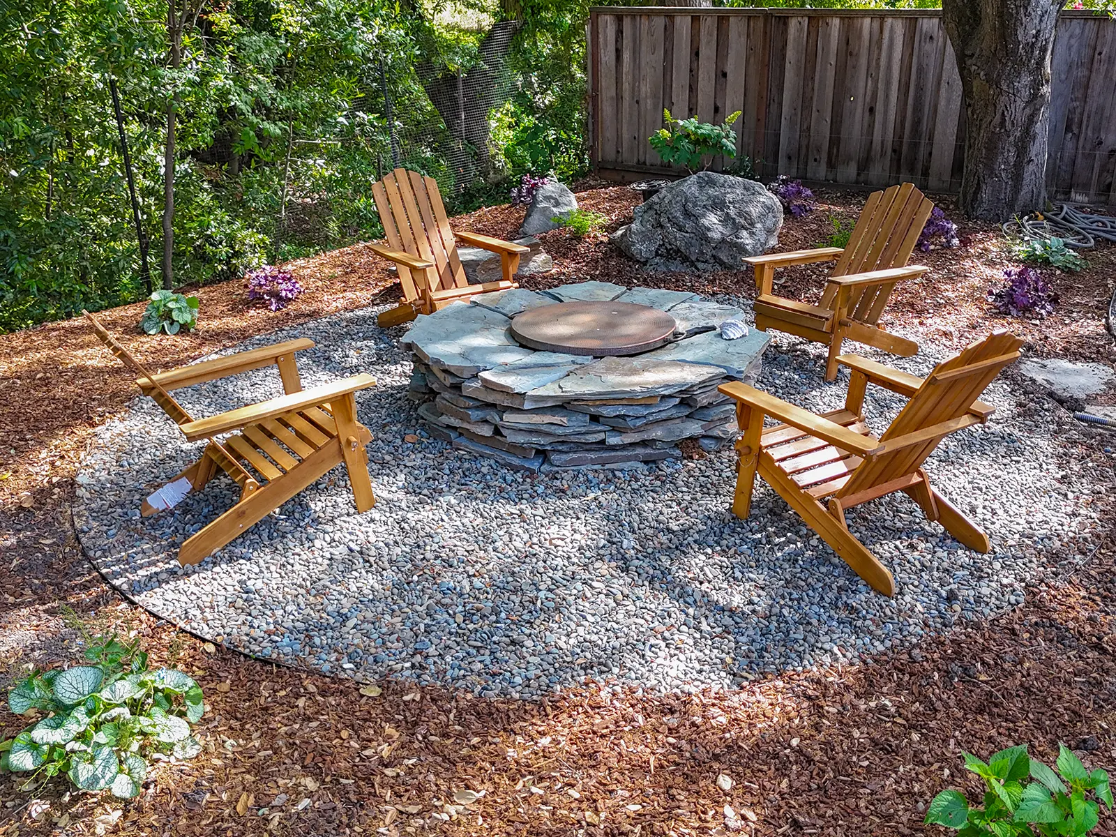 An innovative storm tree trench sustainably recycles water from surface drainage and downspouts, directing it to fruit trees in the front yard. Oak Haven masterfully combines practicality with elegance, creating a tranquil retreat for enjoyment in every season.